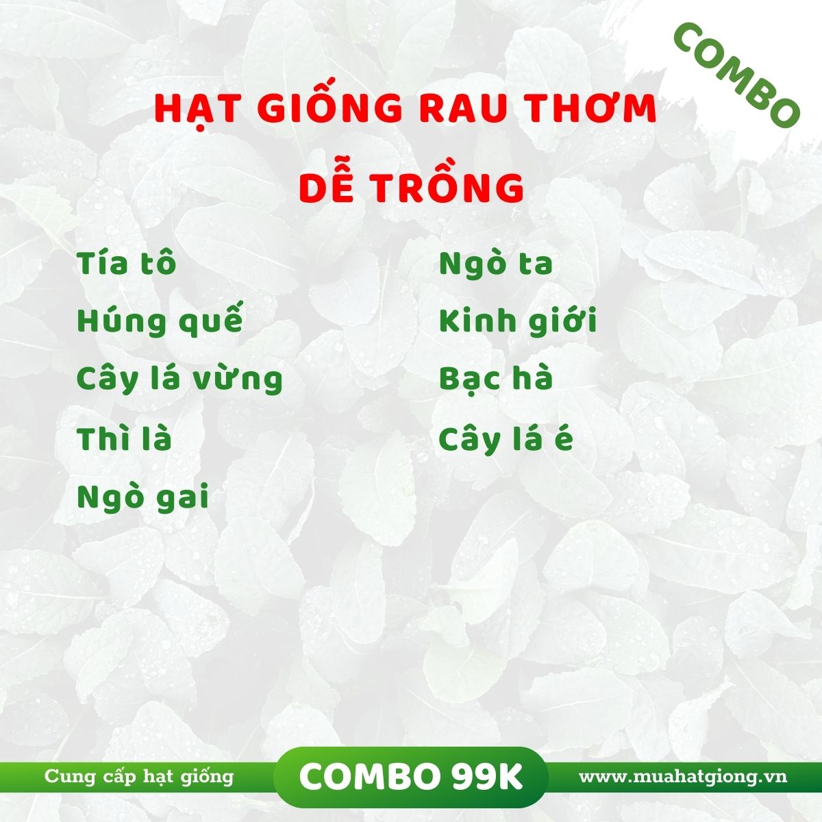 [Combo] +9 Loại hạt giống rau thơm dễ trồng